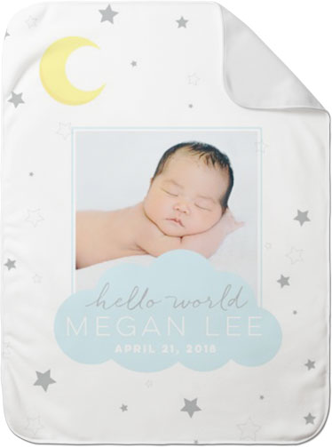 A super cute baby blanket with a dreamy stars and moons print in subtle shades of gray blue and yellow personalized with babys name. 5 out of 5 stars. 5 out of 5 stars.