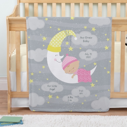 A super cute baby blanket with a dreamy stars and moons print in subtle shades of gray coral pink and yellow personalized with babys name. Personalized Baby Blanket or Lovey Full Moon and Stars Flannel-Minky Blanket wName Custom Moon Cloud and Stars Blanket Boy or Girl. From start to finish I easily invested 80 hours into making this blanket and am thrilled with the results.