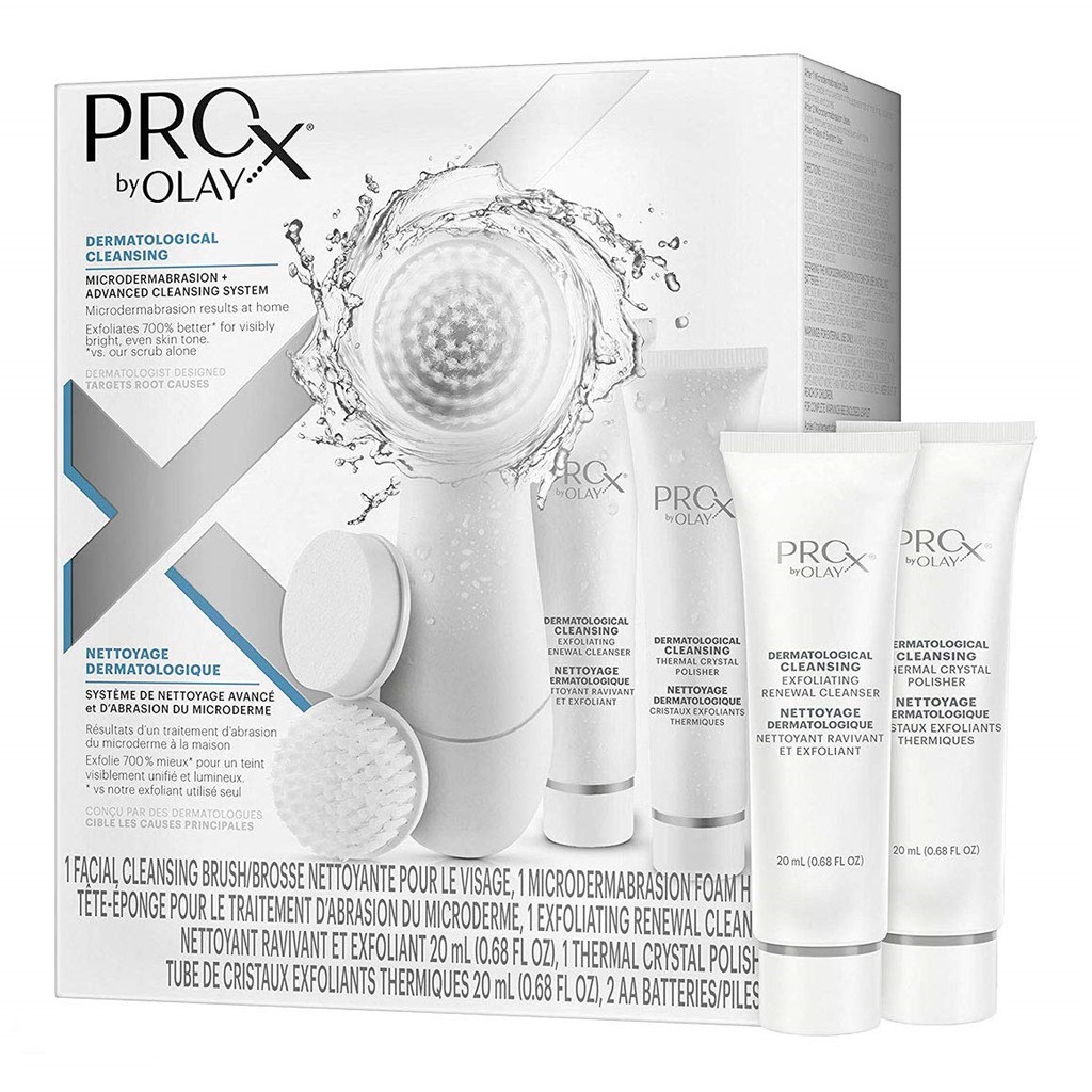 Ad No Extra Preço Baixo é Todo Dia. ProX by Olay Microdermabrasion Plus Advanced Cleansing System is dermatologist-designed and exfoliates skin for brighter more even skin tone. Each rotation gently exfoliates and cleanses hard-to-remove makeup leaving your face clean and primed for hydration.