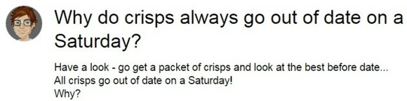 Crisps can totally go soft or stale. Crisps get made in a factory that normally runs Monday to Friday. Crisps always go out of date on a Saturday.